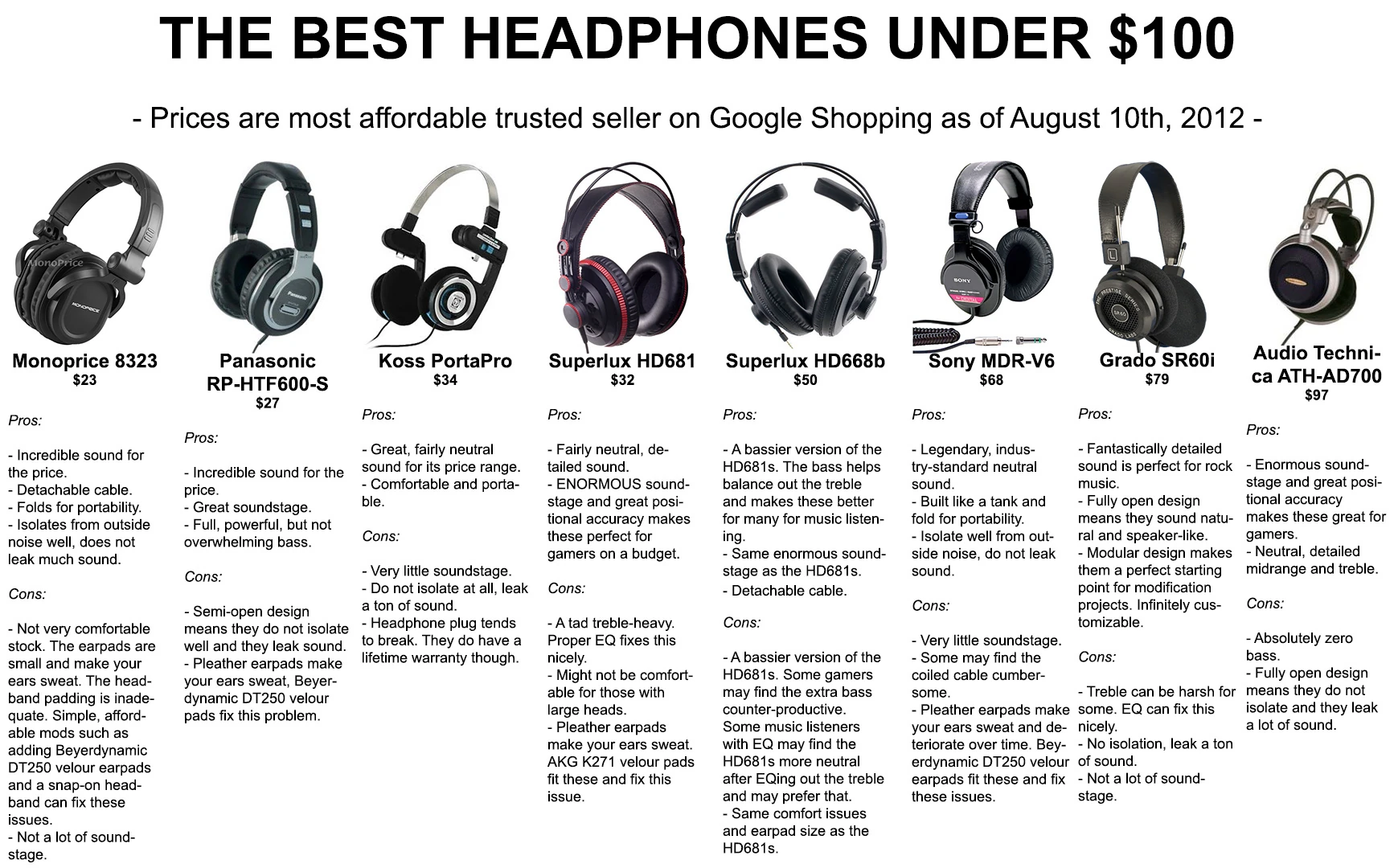 A guide for good headphones under $100 USD.